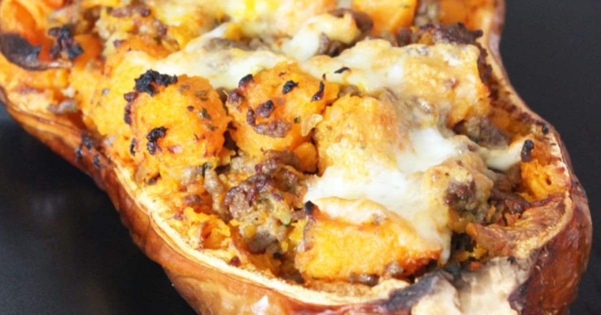 Butternut farci à la mozzarella et viande hachée - Recette par ...