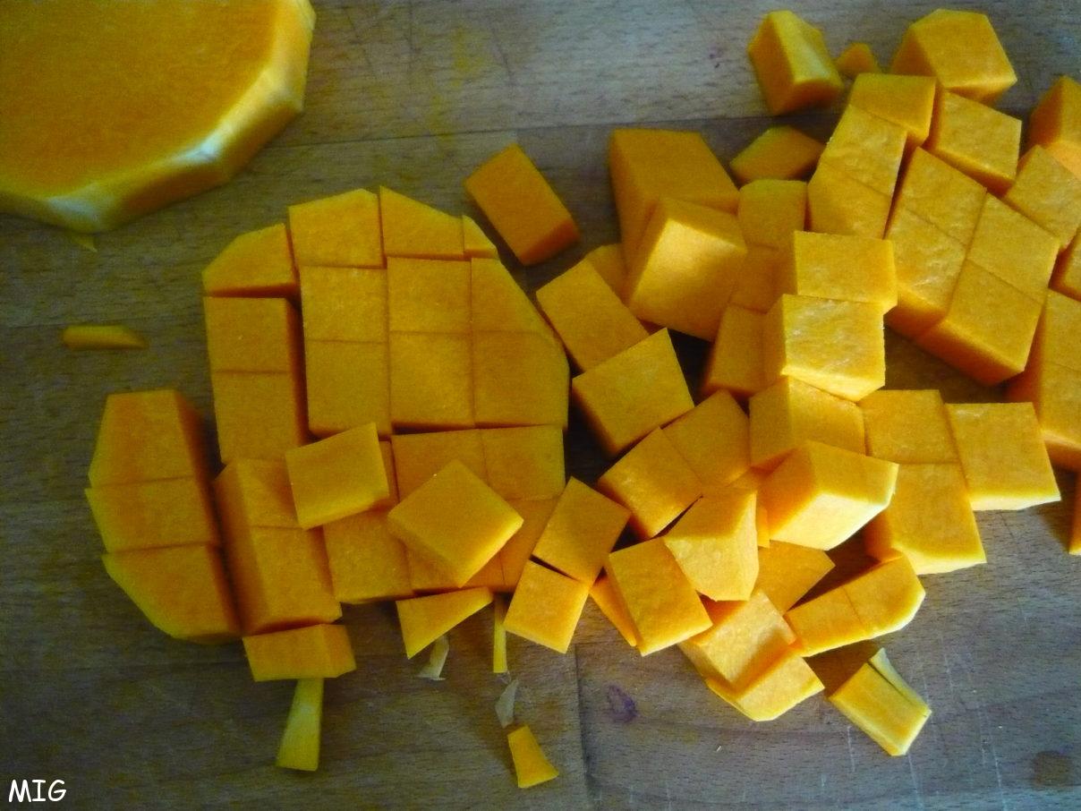 Eplucher et couper en cube le butternut et le cuire dans un peu d'huile.